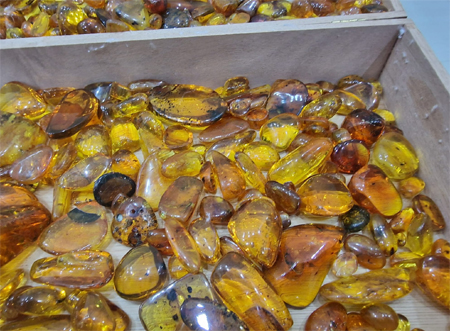 It's a fantastic lot of amber fossils, with over 399 specimens, including small insects, leaves, and more. It's a truly special lot with a variety of fossils in different sizes and with varying values. Great for collectors or ideal for resale if you own a jewelry or gemstone shop. The lot includes mini, small, medium, and large gemstones.